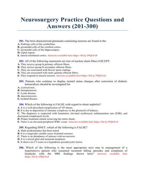 Read Online neurosurgery practice questions and answers Doc online is a convenient and frugal way to read neurosurgery practice questions and answers you love right from the comfort of your own home. Yes, there sites where you can get Doc "for free" but the ones listed below are clean from viruses and completely legal to use.